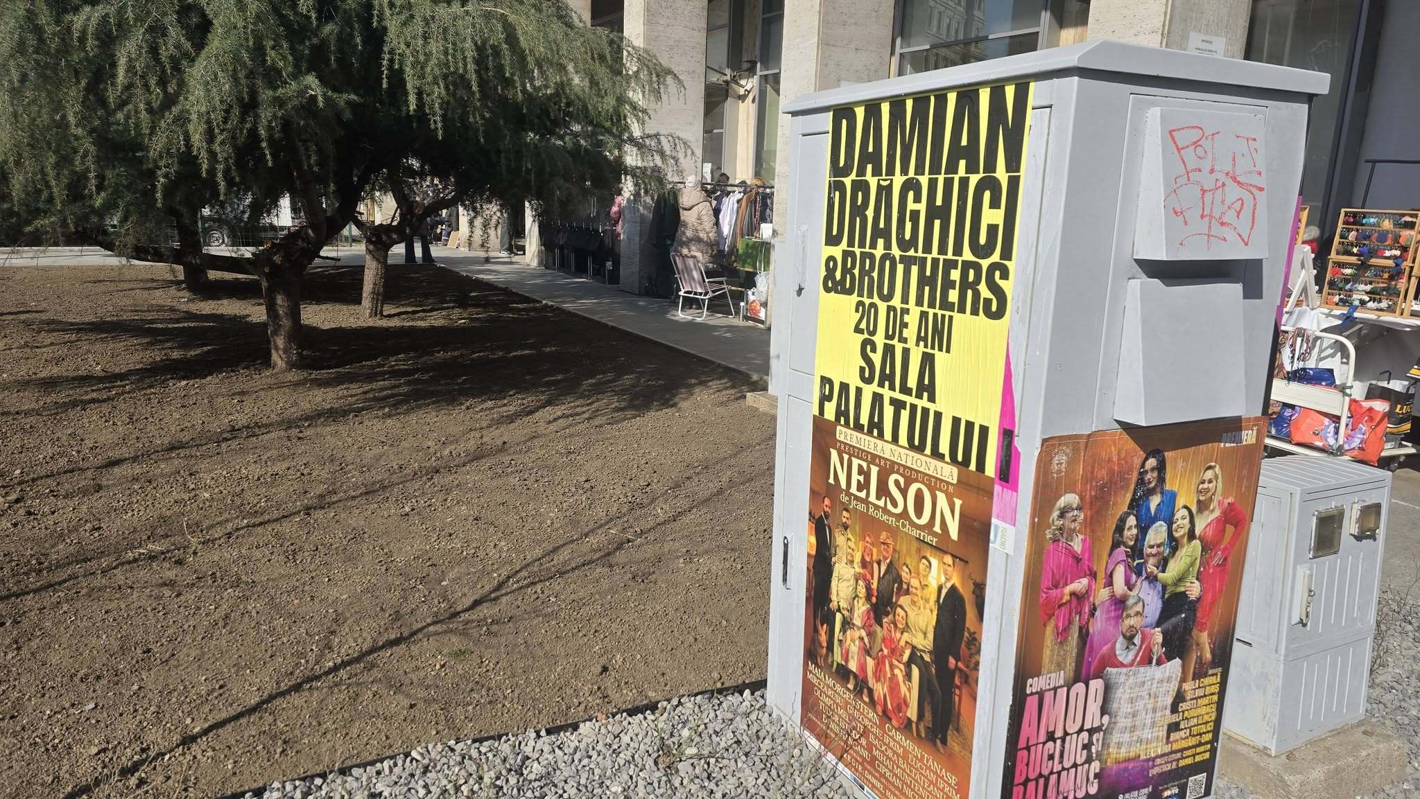 Primăria Capitalei a montat stâlpișori în fața Sălii Palatului și a demontat un panou publicitar: „Trotuarele sunt pentru pietoni”