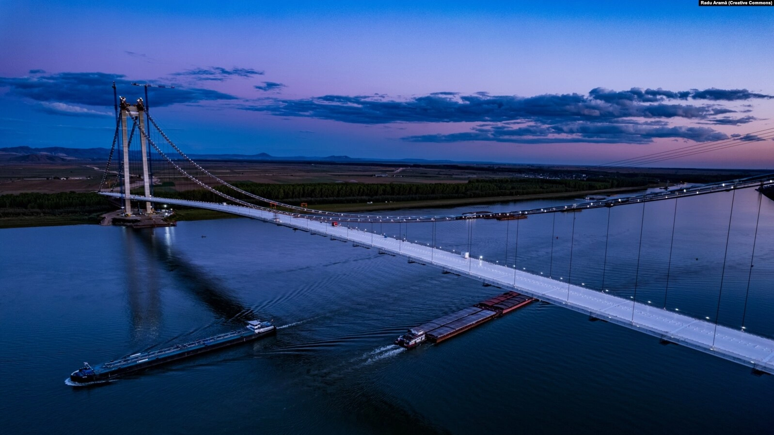 Ninsoarea și viscolul au închis circulația pe cel mai mare pod suspendat din România