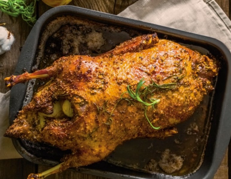 Rață umplută cu mere